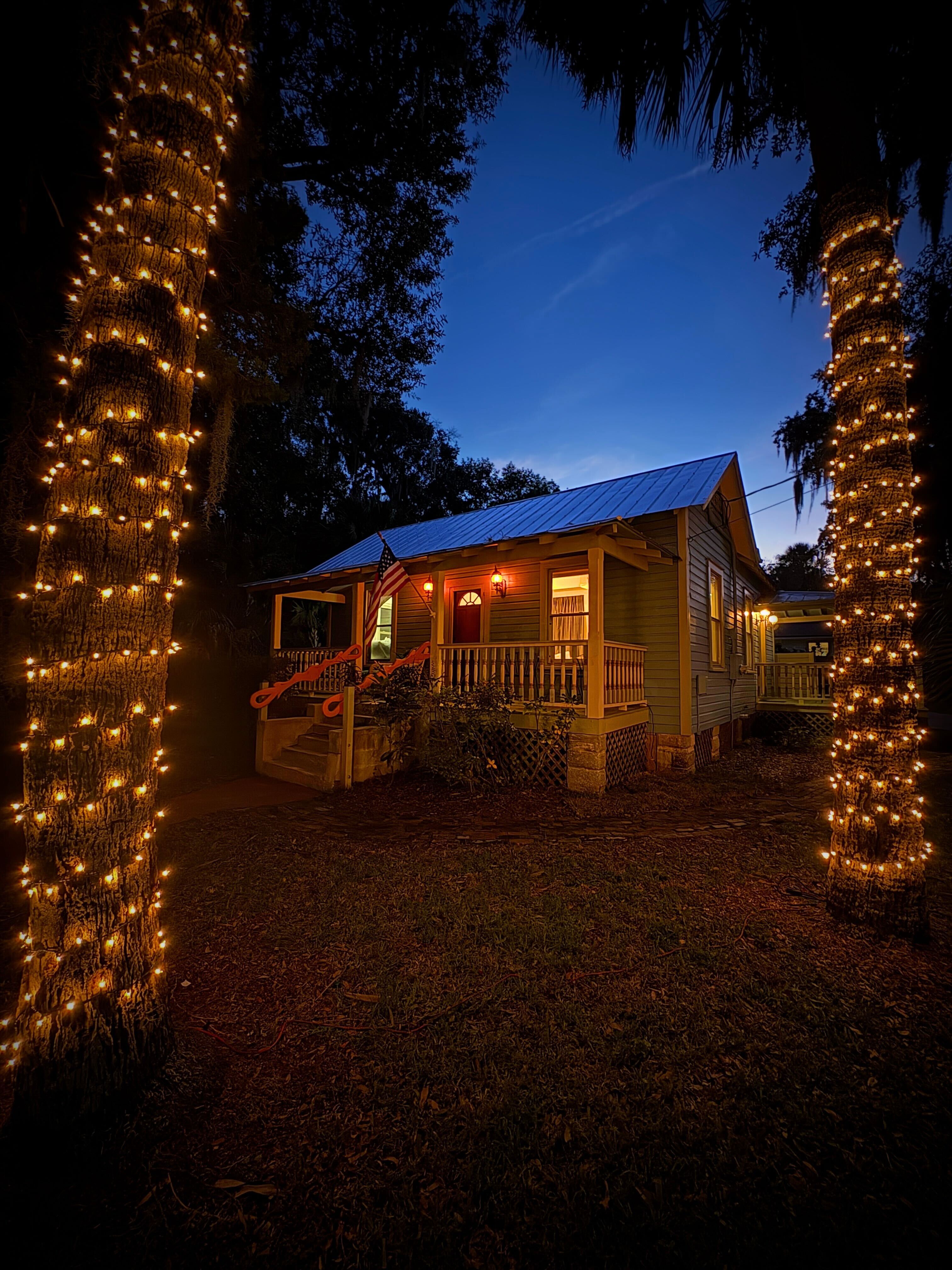 Built in 1905, this lovingly restored home offers comfort, style, and a fascinating backstory. With river views, kayaks for guest use, and screened porches for evening wine, it’s an ideal stay for families or groups. The fort, Visitor’s Center, and St. George Street are all within an easy walk — meaning you’ll never miss a moment of the Nights of Lights glow.