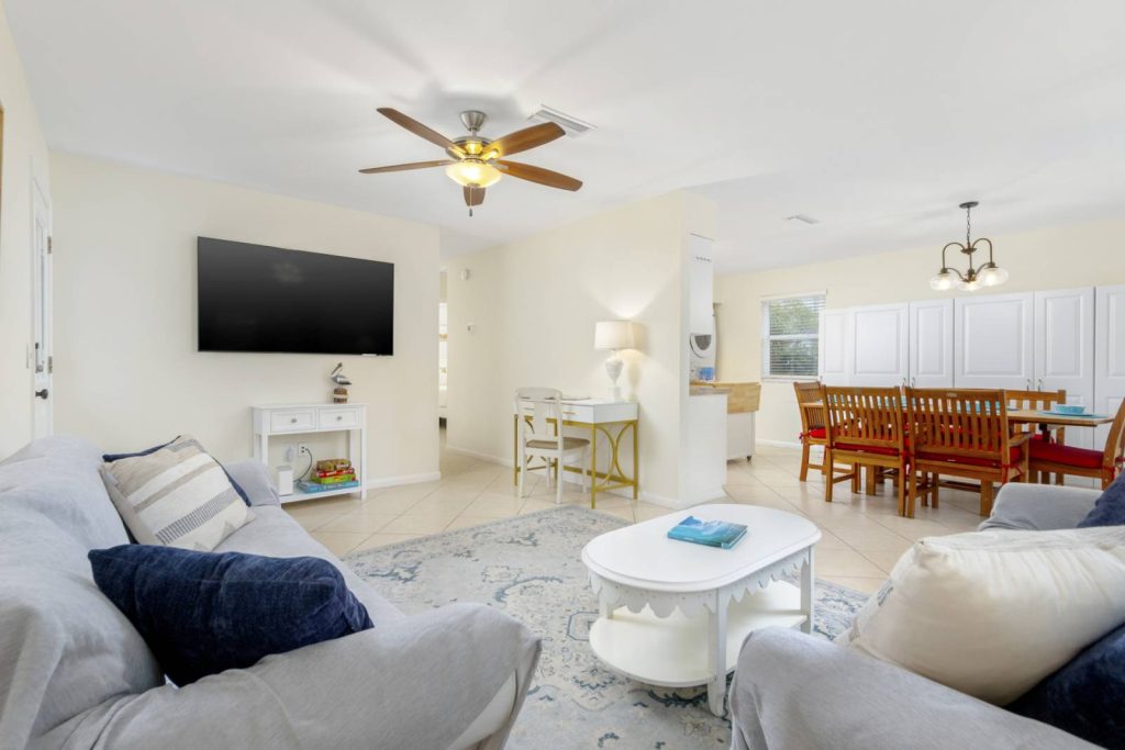 Located on a canal with a private dock and pool, Seaside Villa is a great choice for pet owners who love waterfront living. Enjoy sunsets, wildlife, and plenty of outdoor space together.