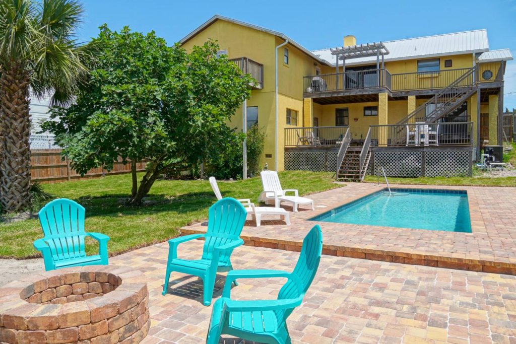 Located in the heart of St. Augustine Beach, this beautifully designed home features a fenced yard and plenty of space for everyone. Walk to the beach, relax in the hot tub, or unwind by the fire pit with your pet by your side.